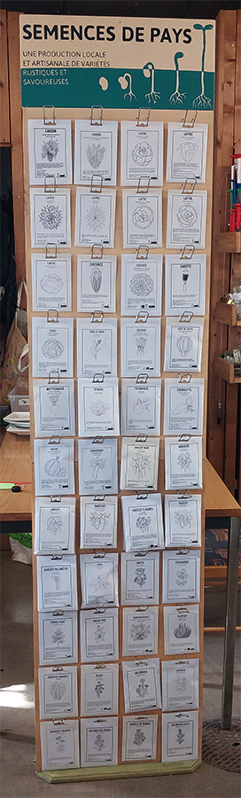 Si vous souhaitez devenir un des points de revente de nos semences, vous pouvez nous contacter à admin@semencesdepays.ch et nous vous ferons parvenir les conditions de revente, les conseils de stockage et la marche à suivre pour le réassort. Un présentoir pour les sachets est également disponible, en deux versions : grand (44 sachets, photo ci-dessous) et petit (20 sachets).